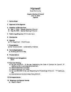 Agenda June 15 2023 Regular Meeting of Council