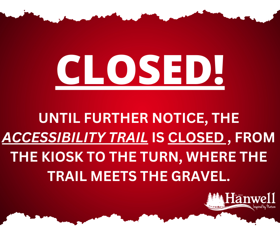 Portion of Accessibility Trail Closed Until Further Notice-Effective Friday, May 12th, 2023.